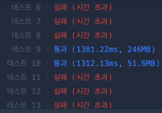 import heapq def solve(graph, dists, src, dest): q = [] dists[src][src] = 0 heapq.heappush(q, (0, src)) while q: curDist, curPos = heapq.heappop(q) if curDist > dists[src][curPos]: continue for nxt in graph[curPos]: if dists[src][nxt] > curDist + 1: dists[src][nxt] = curDist + 1 heapq.heappush(q, (dists[src][nxt], nxt)) if dists[src][dest] == float('inf'): return -1 return dists[src][dest] def solution(n, roads, sources, destination): answer = [] graph = [[] for _ in range(n + 1)] for road in roads: u, v = road graph[u].append(v) graph[v].append(u) dists = [[float('inf') for _ in range(n + 1)] for _ in range(n + 1)] for source in sources: if source == destination: answer.append(0) elif not graph[source]: answer.append(-1) else: res = solve(graph, dists, source, destination) answer.append(res) return answer이후 제출한 결과 몇 개의 테스트케이스에 대해 시간초과가 발생했습니다.