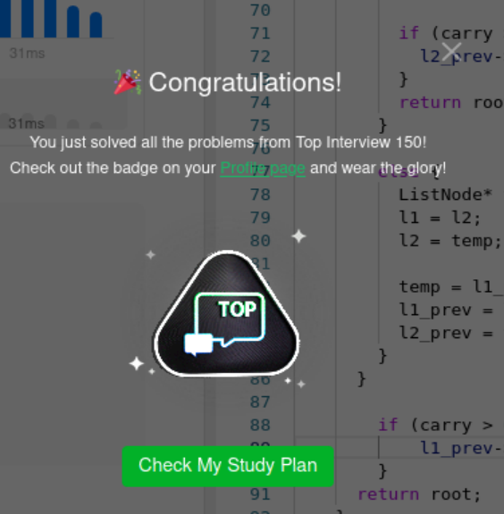 그중 좋은 문제 150개를 엄선해서 모아놓은 분류가 있는데 이게 Top Interview 150이다.