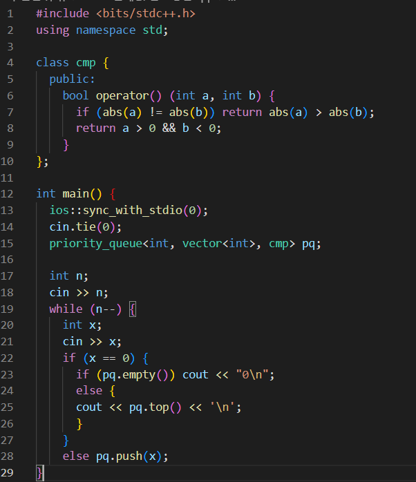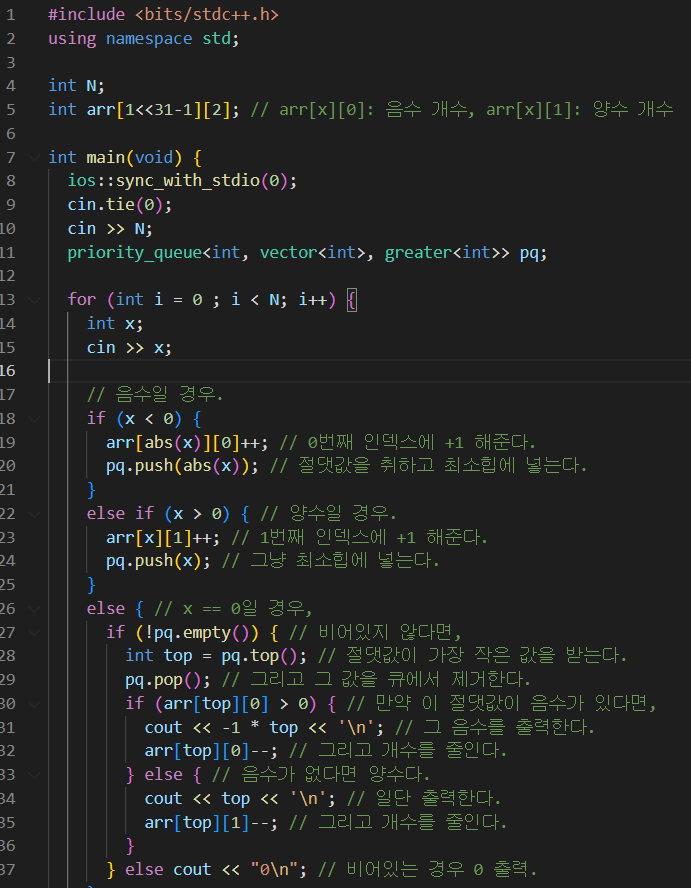 2-1. 도중에 입력으로 0이 들어오면 저 지금까지 들어온 숫자 중에서 절대값이 가장 작은 수를 출력해준다.