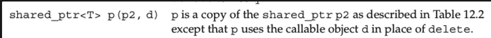 shared_ptr<int> p1 = new int(1024); // ERROR shared_ptr<int> p1(new int(1024)); // OK, direct initialization shared_ptr<int> clone(int p) { return new int(p); // error }